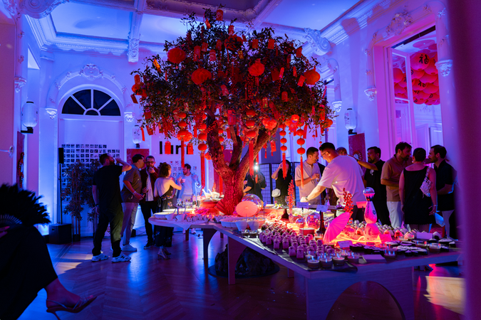 Un bâtiment haussmannien aux moulures blanches, sobre, classique. Maintenant imaginez ce même bâtiment du sol au plafond englouti dans un univers pop néons, motifs illusoires, miroirs déformants, couleurs qui se percutent, le WTF assumé comme principe de décoration. Plus une moulure en vue. Plus un mur neutre. Un espace qui ne ressemble à rien de connu, et qui pourtant raconte exactement ce qu'il devait raconter.